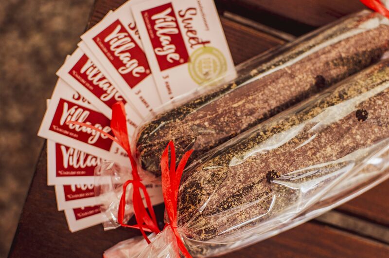 "Шоколадна ковбаска"- пісочна крихта, какао, вершкове масло, волоський горіх.