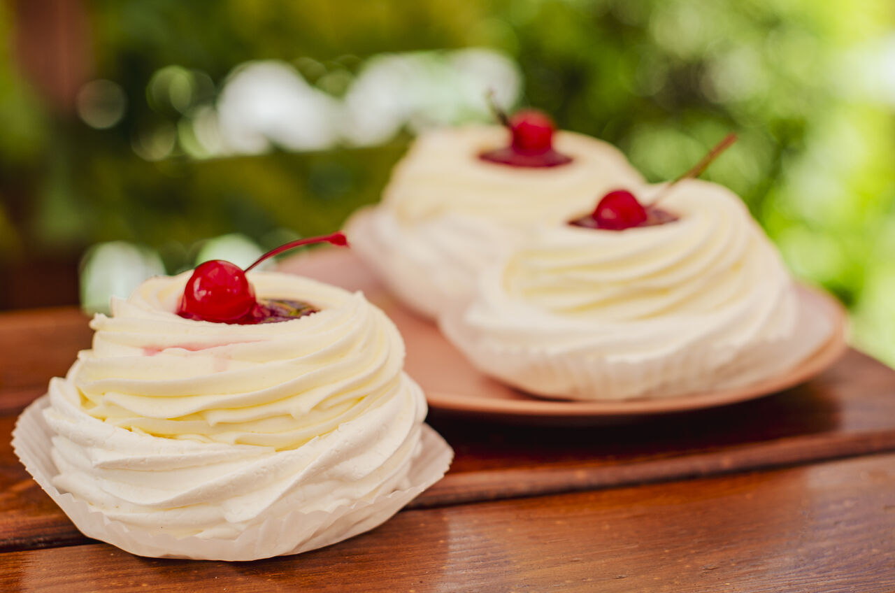 Десерт "Павлова" - чіз крем, лимонний курд, хрусткий меренговий кошик.
